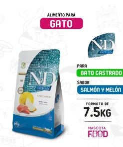 Alimento para Gato Castrado N&D Ocean Sabor Salmon y melon 7.5 KG