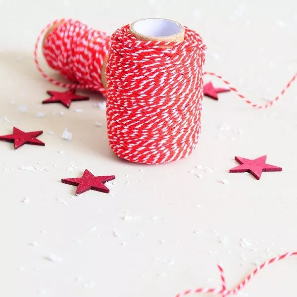 Precioso cordón trenzado formado por 12 hilos de algodón en colores rojo y blanco.
